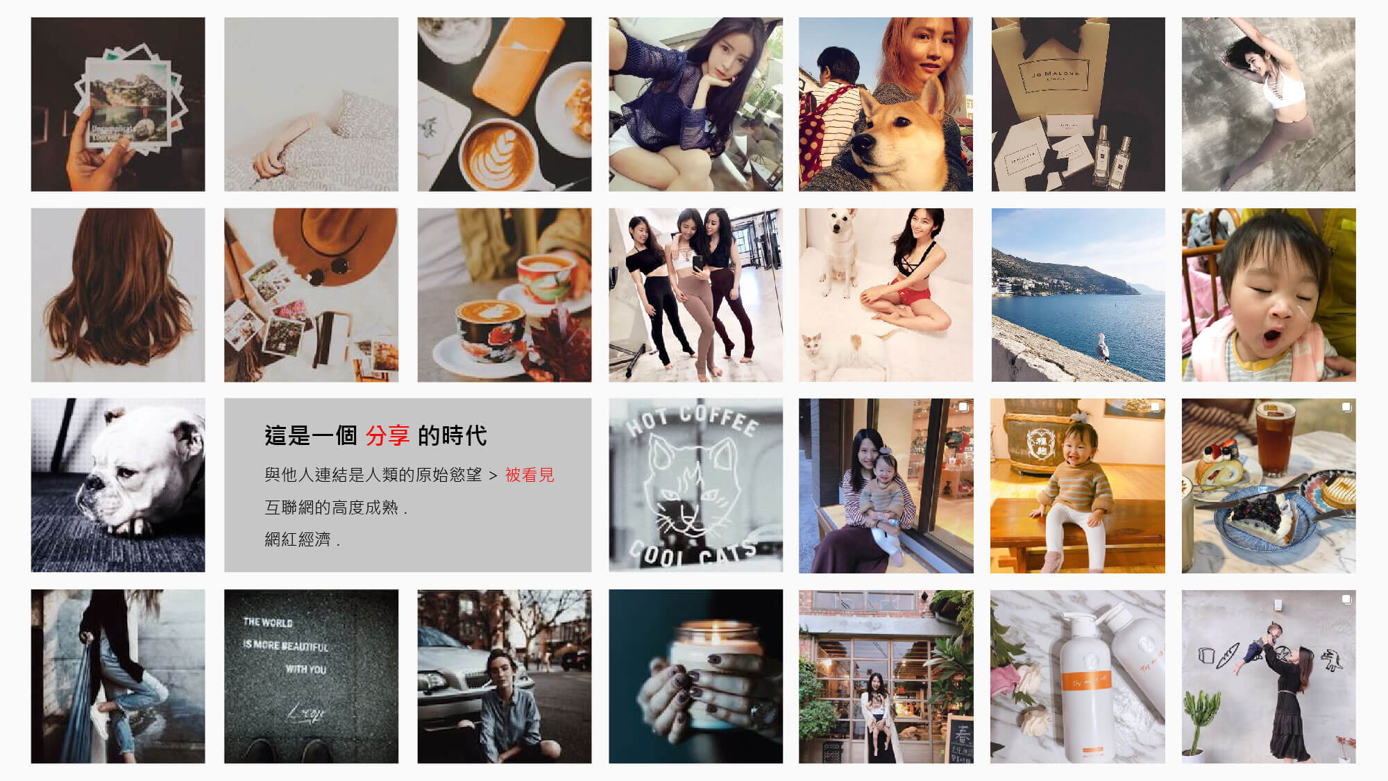 人們最愛談論自我 , 這從各種社交媒體的蓬勃發展可以見一斑 , 故這是一個 < 自我表述的時代 > . 你練瑜珈 , 喝了杯咖啡 , 遛狗都希望讓所有人知道 , 當然你生了小孩 , 這麼重要的事 , 更是不能讓所有親朋好友錯過 .