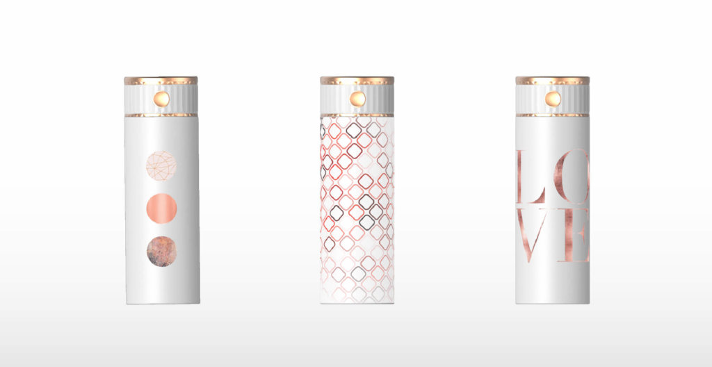 簡約的瓶身設計 , 白色為主基調 , 搭配玫瑰金邊的上蓋 , 與時尚圖案紋路瓶身 .
