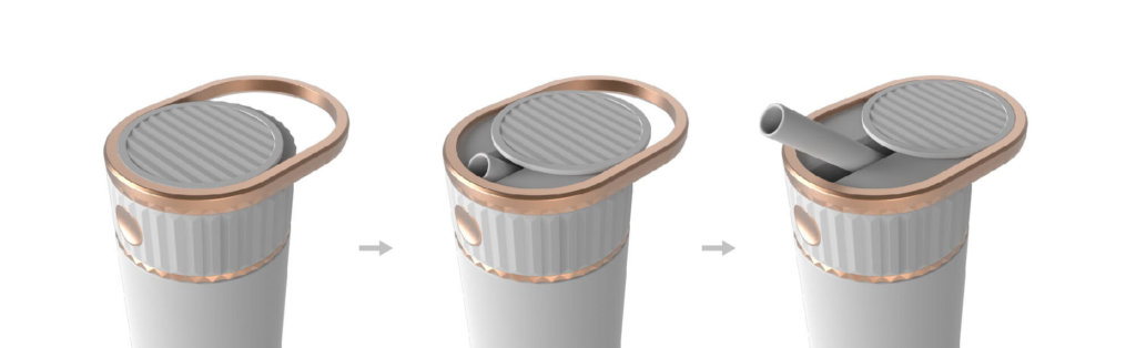 上蓋前推 , 收起吸管 . 上蓋橫紋便於前推 . 全程不接觸吸管 , 衛生安全 .